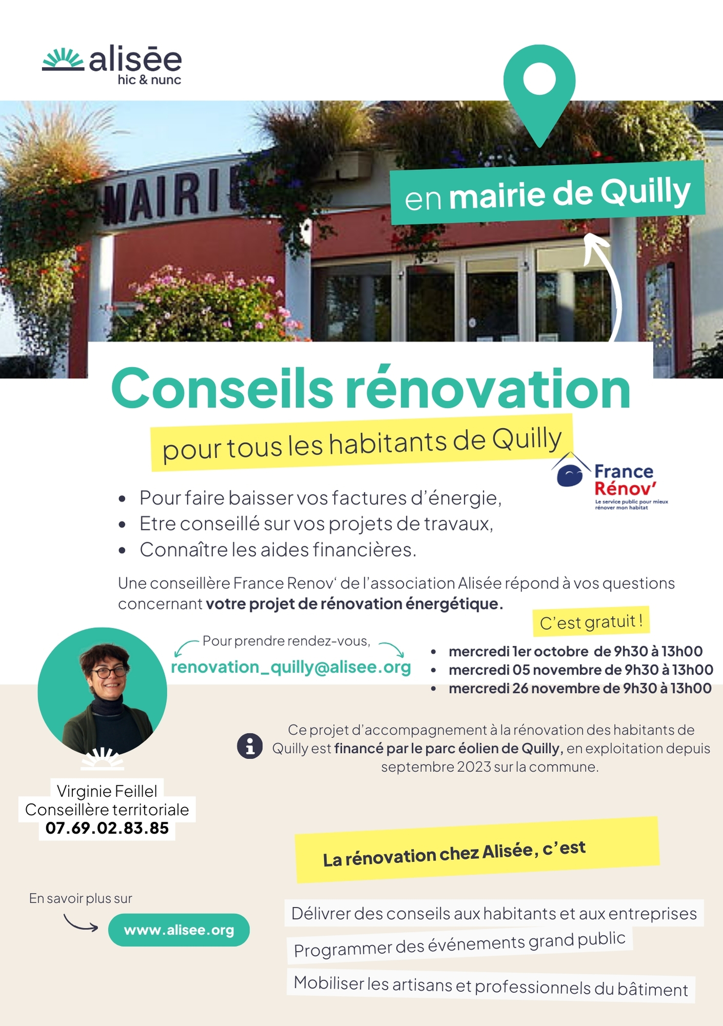 Pour prendre RDV et info, écrivez à : renovation_quilly@alisee.org